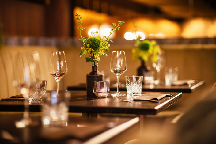 Das Restaurant und die Bar strahlen mit einer „Reduzierte Opulenz“ ohne dabei aufdringlich zu sein.