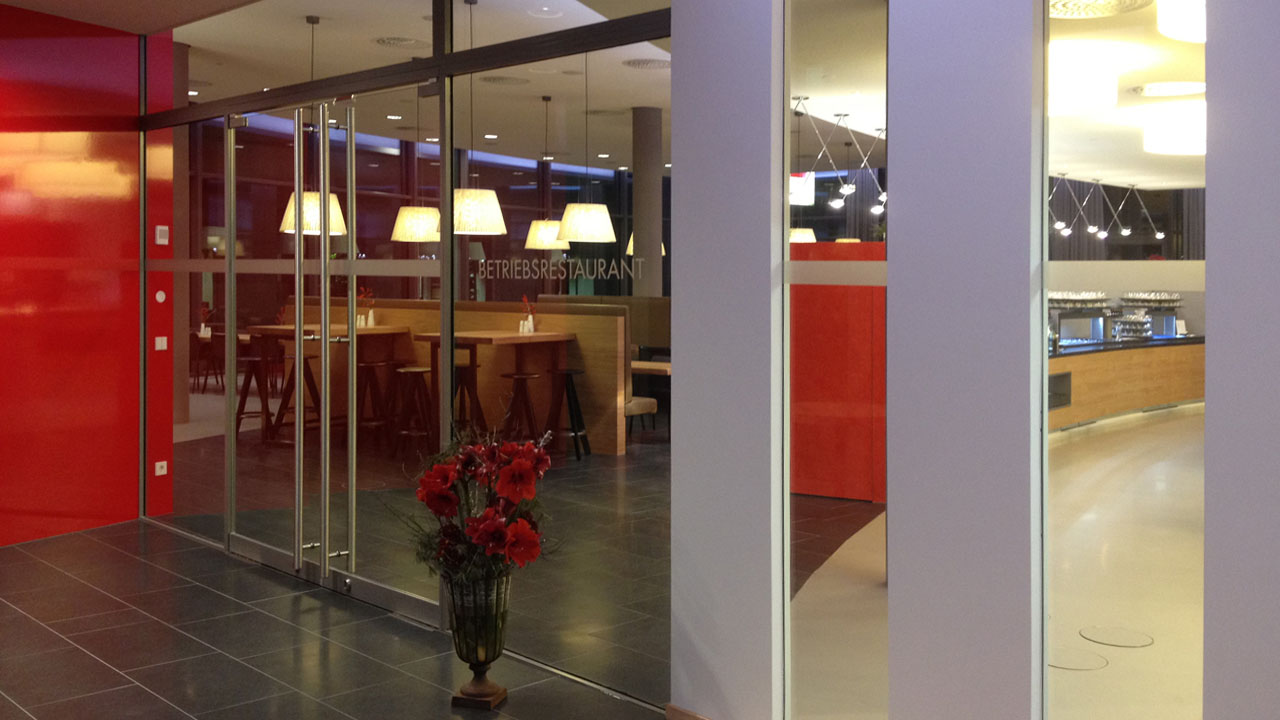 Zitat Bauherr (Bernd Herrmann): „Wir alle fühlen uns so, als würden wir schon seit Wochen und Monaten in dieses neue Betriebsrestaurant gehen. Das ist das eigentliche Kompliment: Wir haben etwas geschaffen, das fließend in unseren Alltag übergegangen ist und das wir als etwas annehmen können, was zu uns gehört.“
