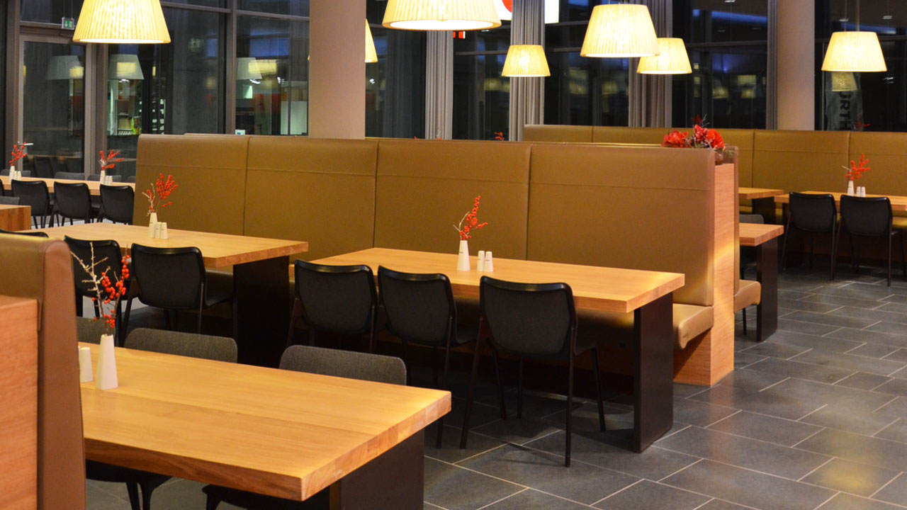 Ziel der Umbauarbeiten war zum einen die Erweiterung um 150 Sitzplätze und zum anderen den Mitarbeitern eine entspannte Pause zu bieten.